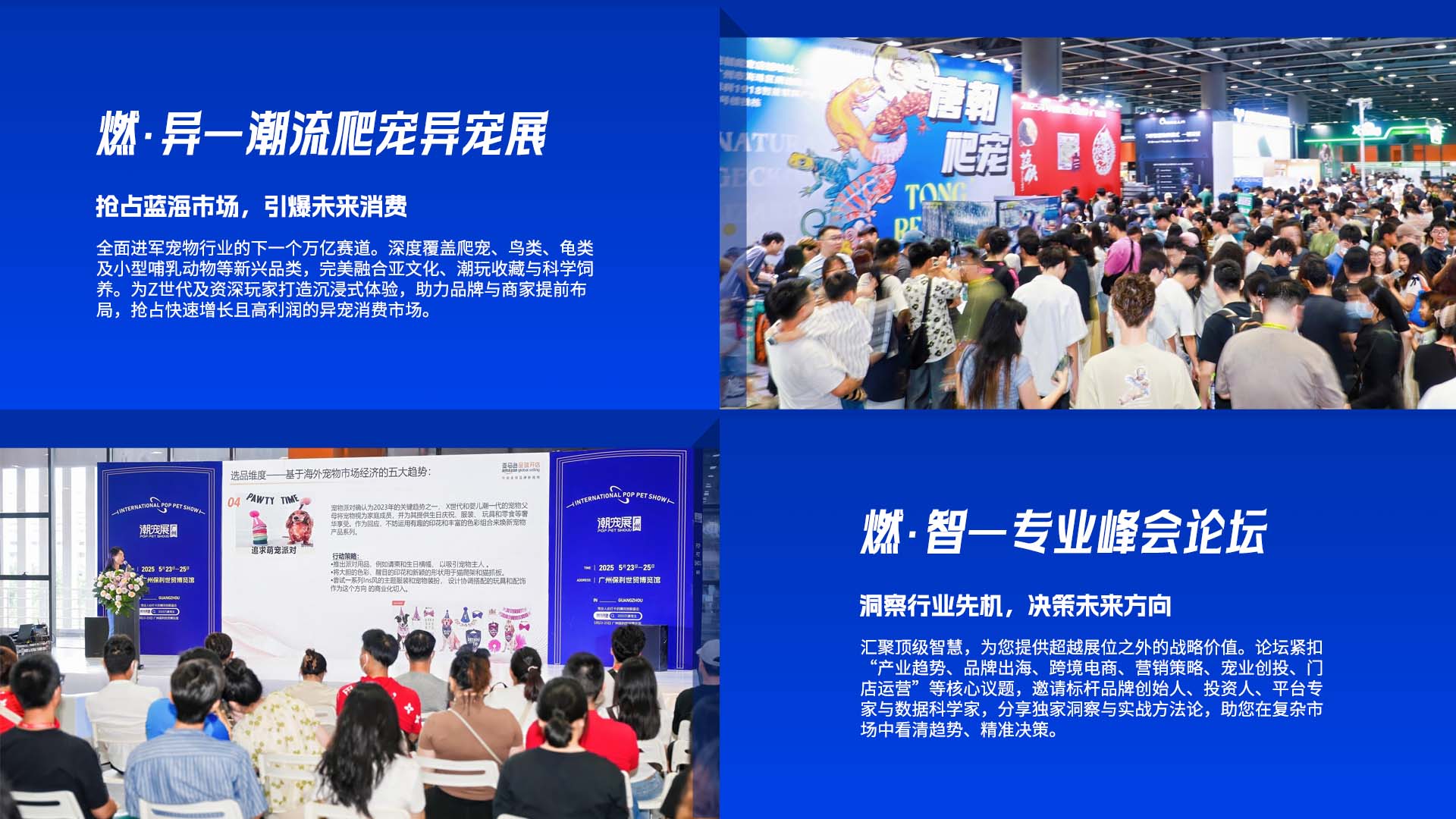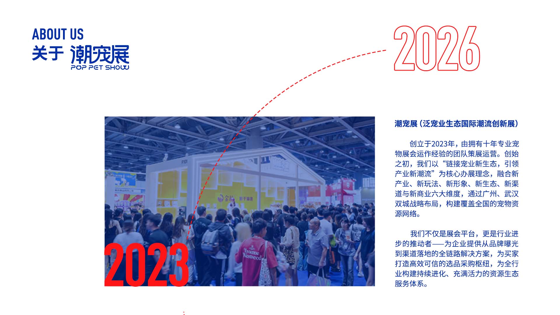 潮宠展是华南、华中地区领先的专业宠物展会,也是宠物行业展会中,发展速度最快,最具创新的专业展会平台,也是宠物行业头部企业每年必选的重点专业展会之一。展会每年分别在广州及武汉举行。