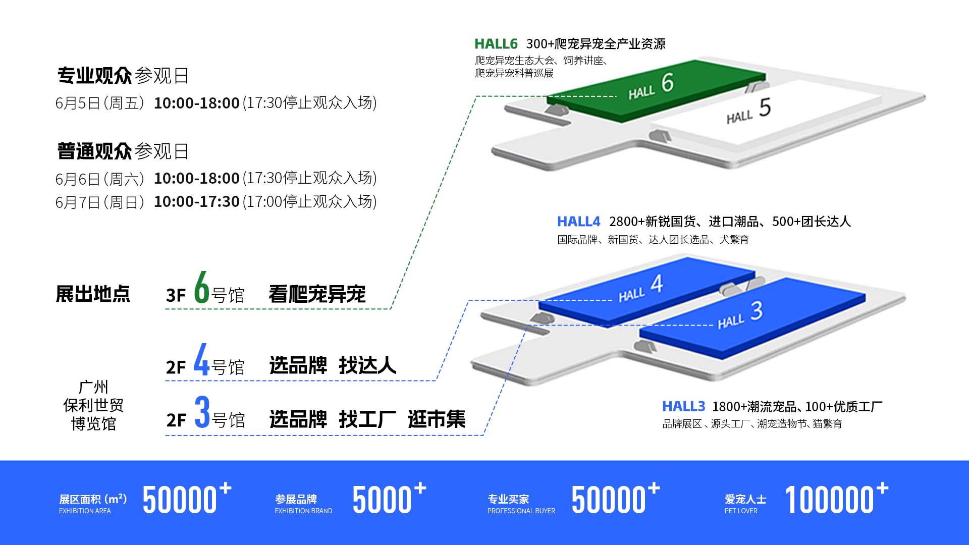 2024第4届广州国际潮宠展将于2026年6月5-7日在广州保利世贸博览馆举行。同期将举办潮爬展、潮羽展、潮甲展系列爬宠异宠主题展会,本届展会预计展出面积5万平方米,专业观众5万人次,普通观众10万人次,涵盖猫狗及爬宠异宠相关的食品、用品、医疗、保健、服饰、窝垫、器材、活体(猫/狗/爬宠/兔子/鸟)全产业链。