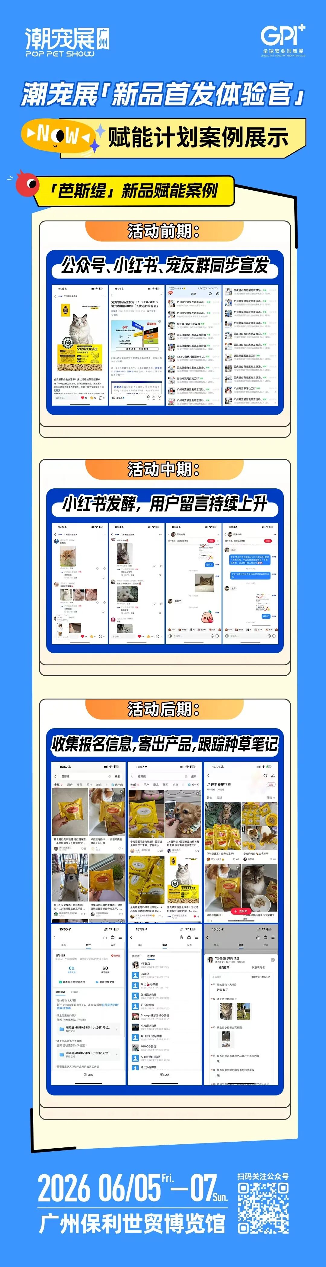 参与 “小红书种草计划”,我们将为您招募小红书宠物体验官,在展前试用您的新品,并发布真实测评笔记、使用心得与场景化内容,以可信UGC撬动精准用户关注。