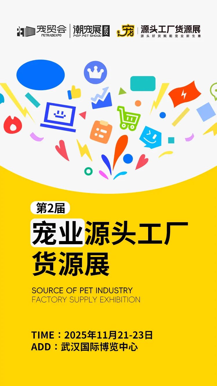 2025年11月21-23日,宠业源头工厂货源展将全新升级,重磅启幕!与武汉国际宠贸会暨潮宠展在武汉国际博览中心同期举行!
